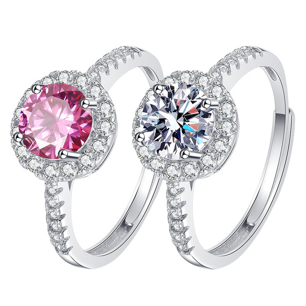 Halo Zircon Stone Pink & White Finger Ring ( Combo )